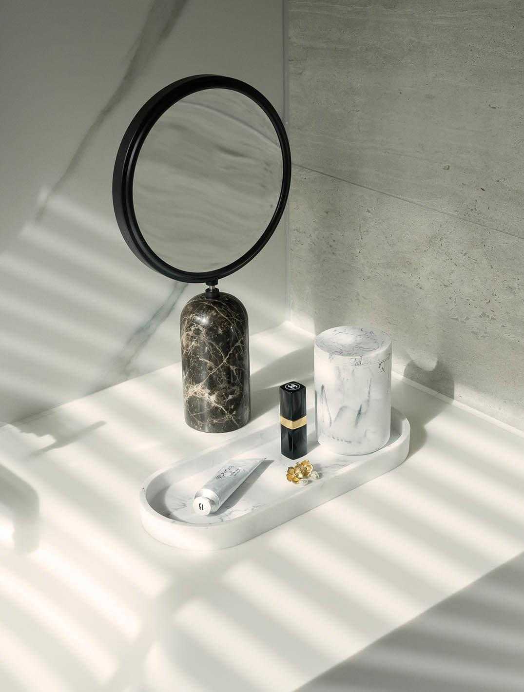 The Bentley Azul medium amenity tray offers an elegant solution for organizing bathroom amenity products. With its distinctive rounded design and white marble colour option, it is both aesthetic and functional. Made from high-quality resin, this product is water-repellent and easy to clean. As part of the Mix & Match collection, it is ideal for luxury hotel bathrooms seeking a refined appearance.