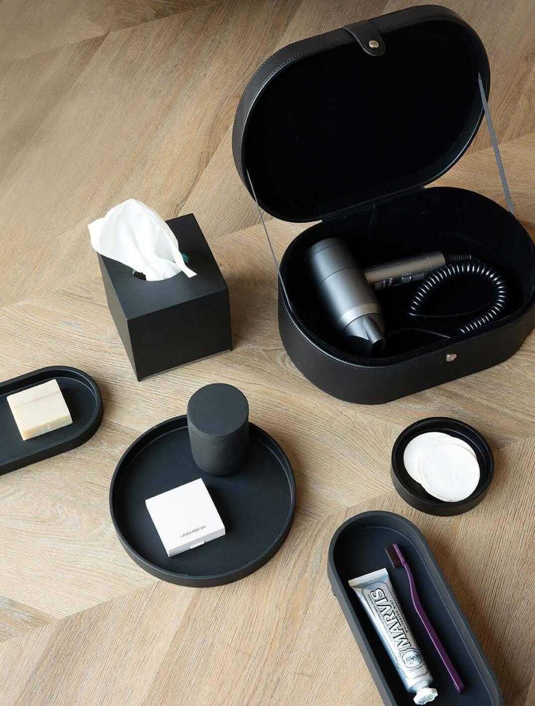 The Bentley Ibu medium amenity tray is an ideal choice for those seeking a balance of functionality and elegance in hotel bathrooms. With its distinctive round design, it is suitable for organizing amenity items. Offered in a black colour option, this tray is part of the Mix & Match collection, allowing you to create a coordinated set that complements the overall aesthetic of the space. Made from high-quality resin, it is water-repellent and easy to clean.