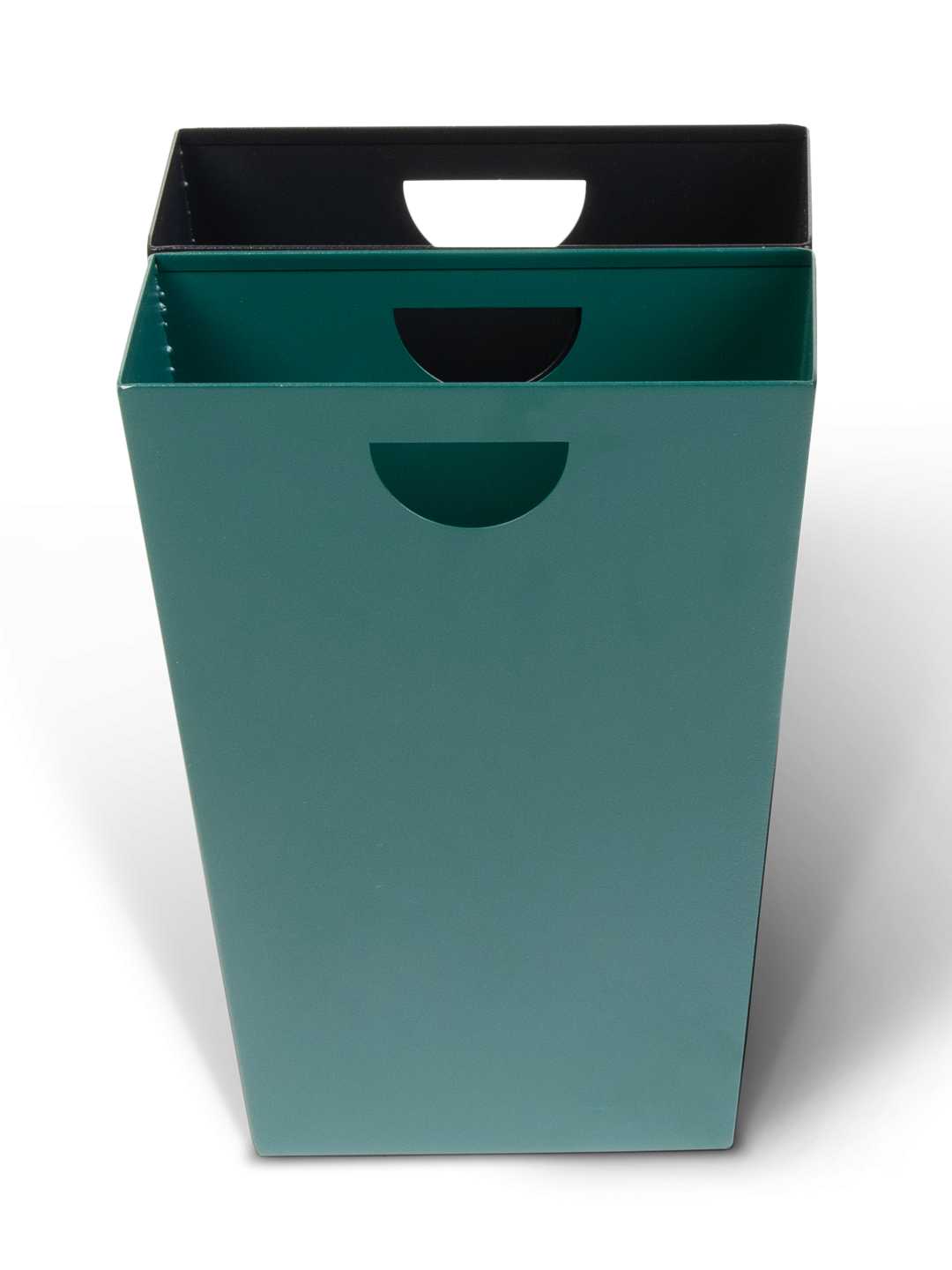 • Durable metal inner containers in black and green
