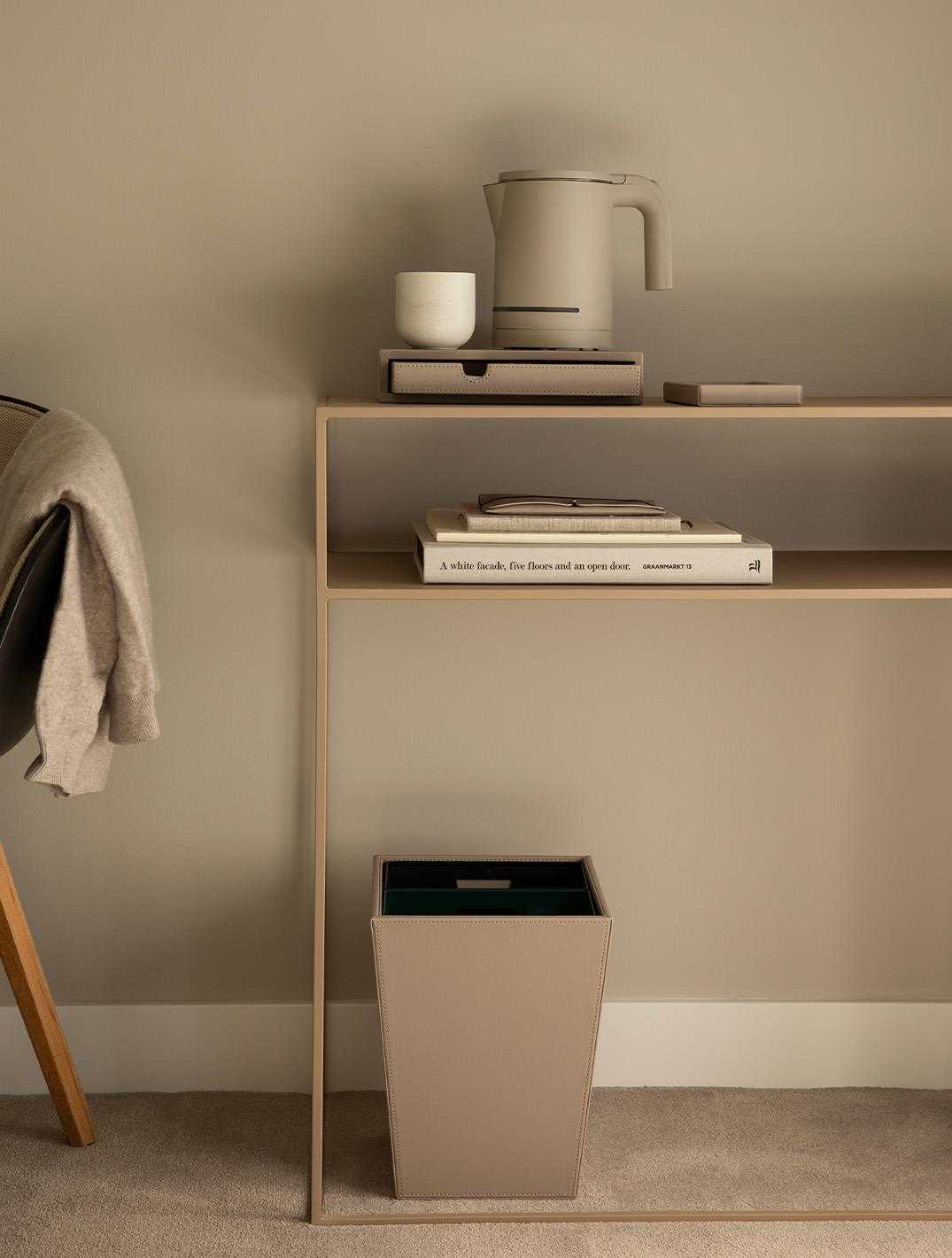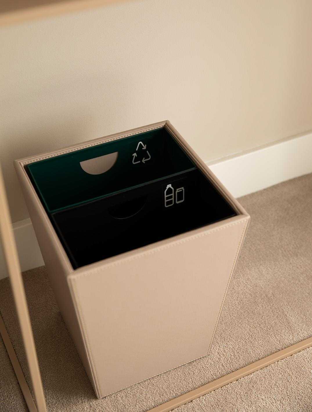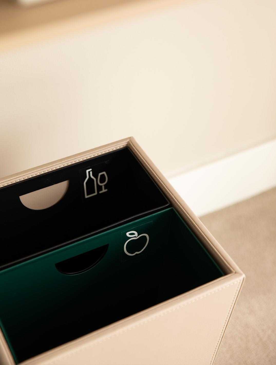The Palma square waste bin features two separate inner containers, each with a capacity of 6 litres. Made from water-repellent fabric. Suitable for indoor use.