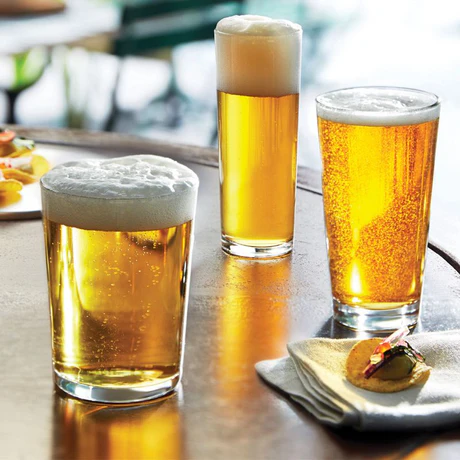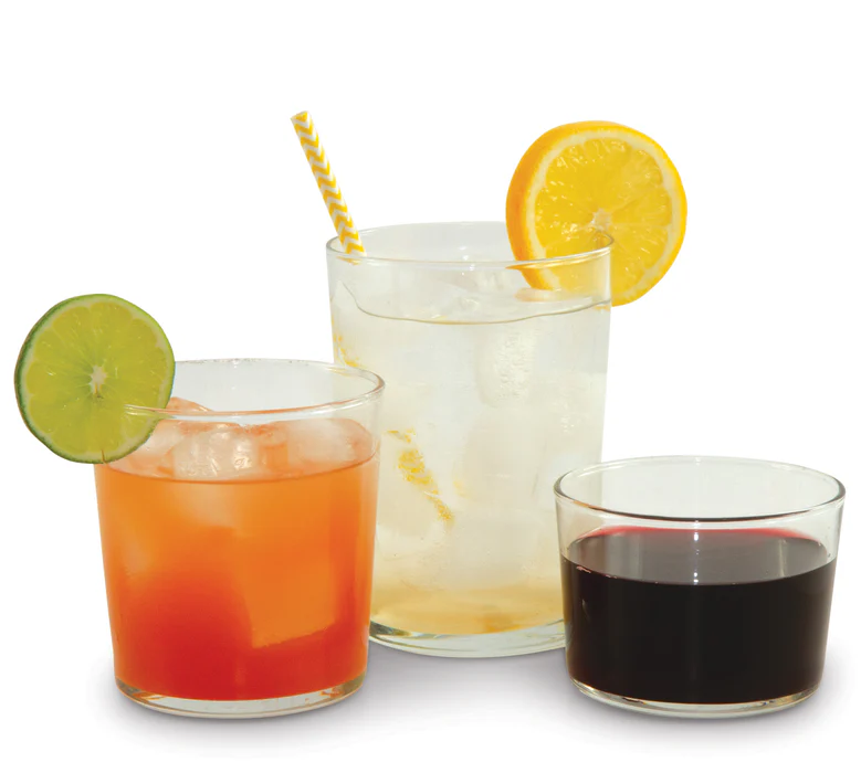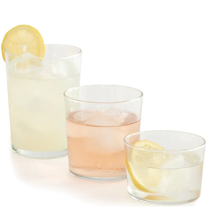 Thin and tempered glasses with unusual proportions designed to enhance the freshness of drinks.
