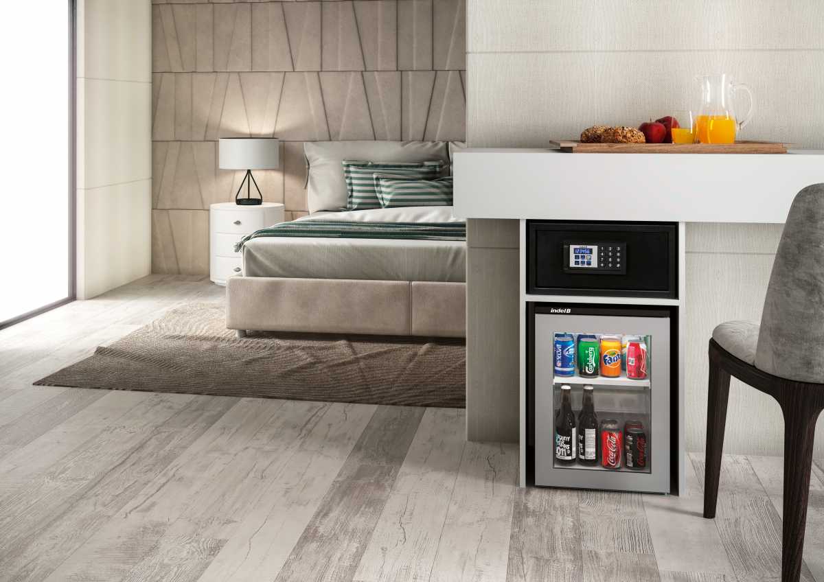 The line of K ECOSMART minibars enables hoteliers to choose eco-friendly and ultra-quiet products of the last generation with an exclusive design. Thanks to the new compressors, which offer best performance, with cyclopentane insulation, cooling gas (R600), and the eutectic plate that keeps temperature constant at night (when compressor is OFF), K ECOSMART products are part of the E Energy Class with a consumption reduced by 77% compared to the leading absorption minibars on the market.