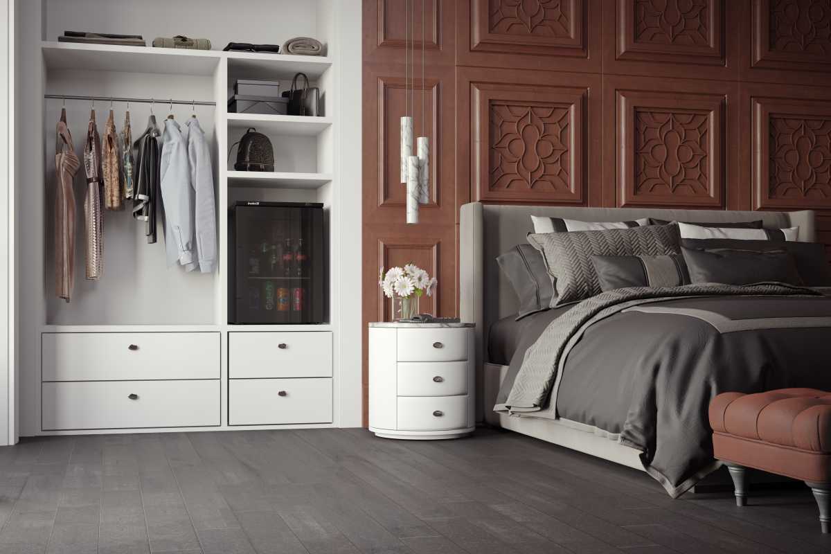Its main features are a total black internal cabinet, aluminum shelves, led light and the patented Smart technology, together with the silence and the great performances, up to 77% of energy saving compared to the best absorption minibar on the market.