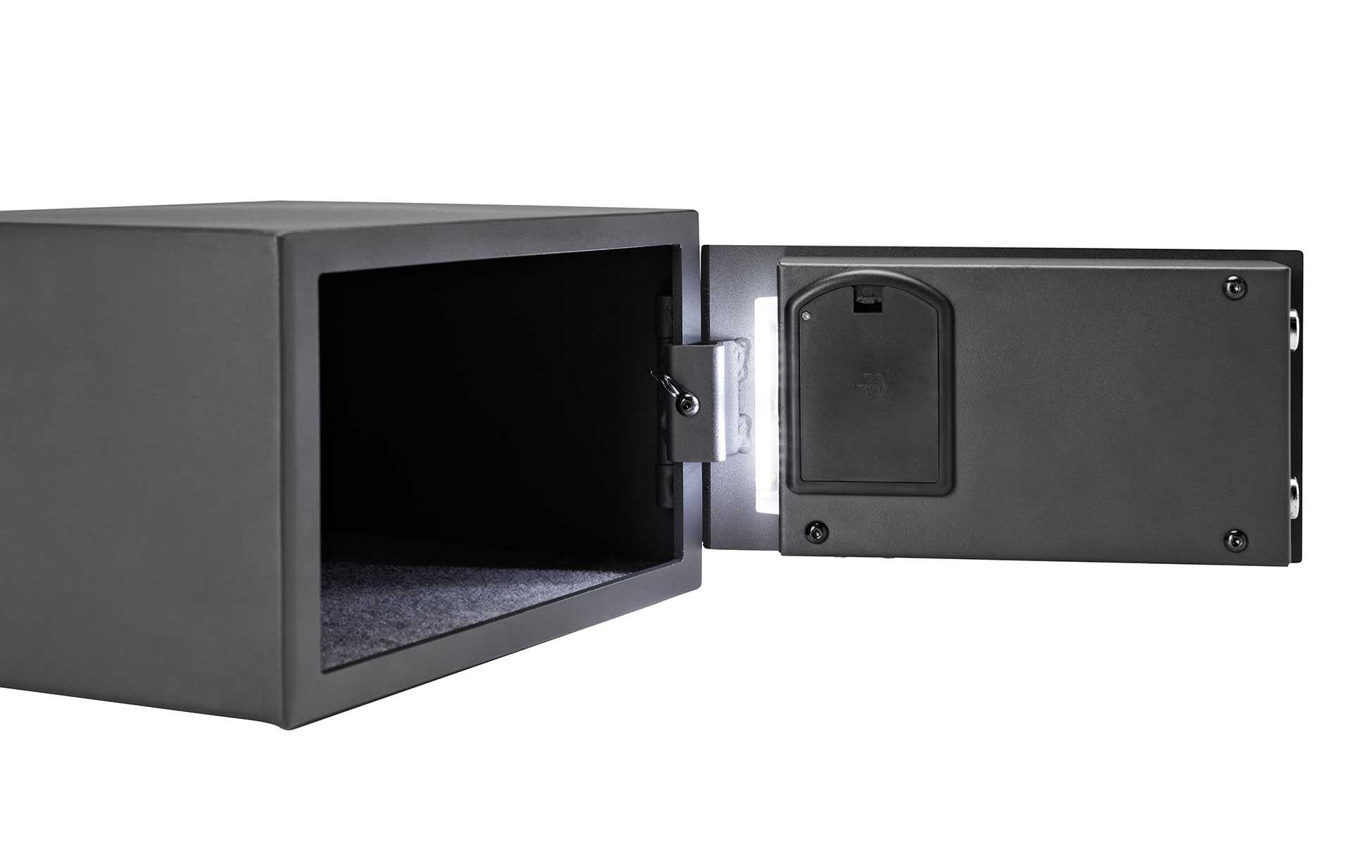 The INDEL B Safe 10 Smart is compact and ideal for limited spaces. Equipped with a wired keyboard, backlit display, and interior mat, it protects your belongings with a double security system. It is supplied with a Data Kit to store and analyze the last 300 openings made by users.
