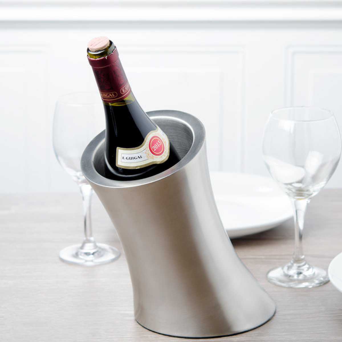 Brushed stainless coolers are suitable for wine & champagne bottles. Double-wall insulation keeps wine chilled for up to 4 hours.