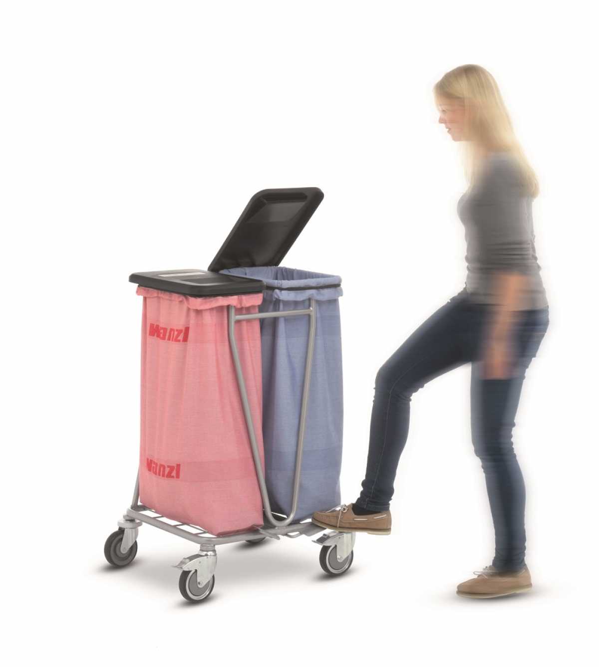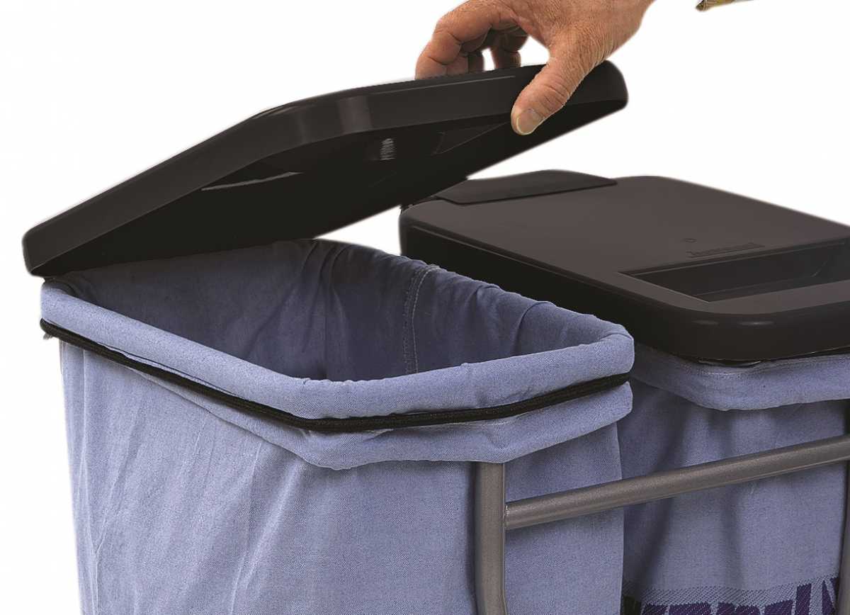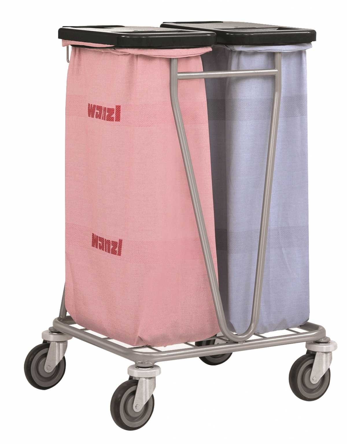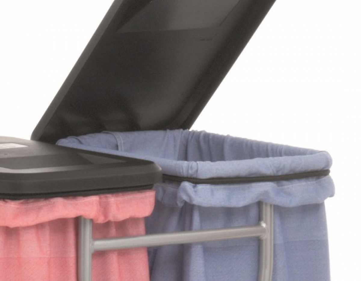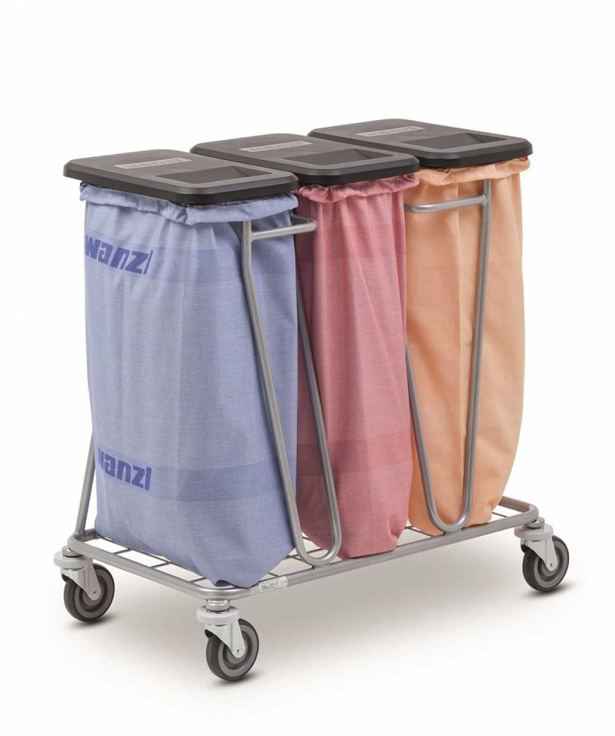Presorting of laundry into two or three modules with coloured bags. For both fabric and plastic bags – these nifty trolleys make sure that all laundry is correctly sorted for washing.