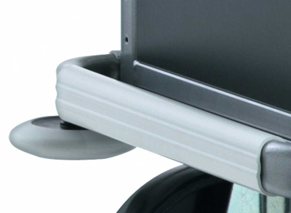 Standard equipment: Steel-tube design, 2 fixed and 2 height-adjustable shelves. Chassis with all-round bumper profile and integrated rubber deflectors. Front side withlockable roll-down panel.