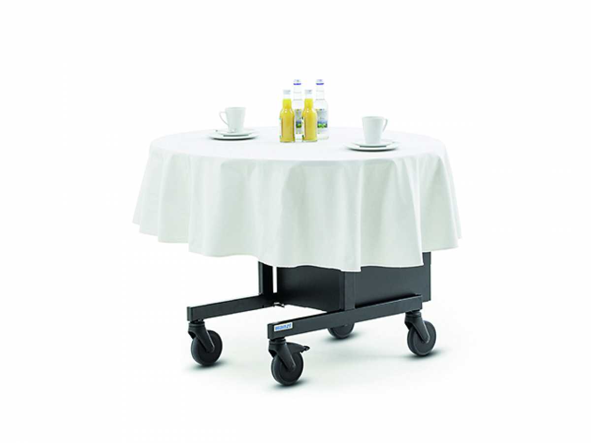 An ideally sized and stable side table for hotel rooms and restaurants, with folding sides for narrow passages. Also available on request with integrated hot box for keeping meals hot.