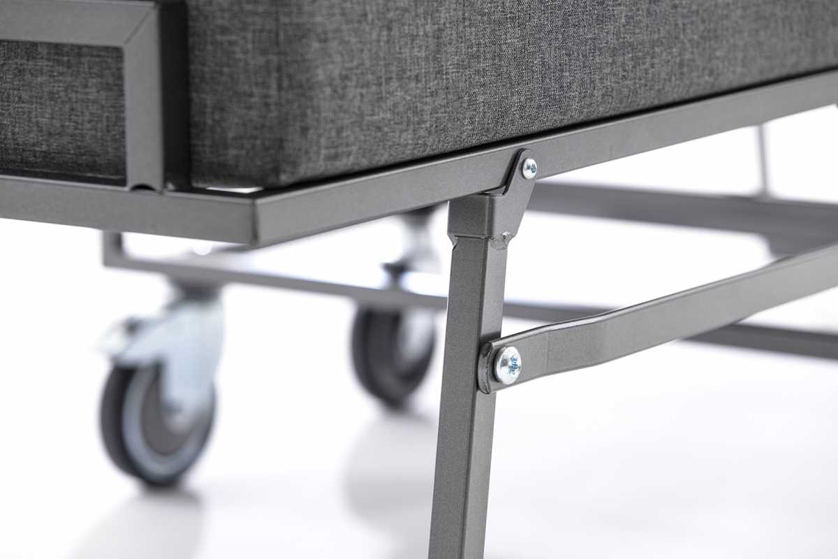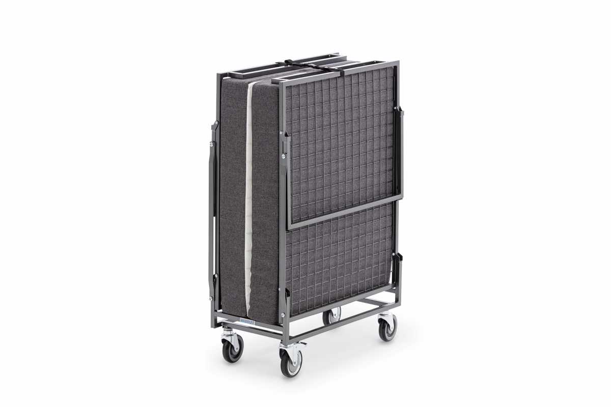 Accessories: foldable mattress made of highly stable polyether foam, suitable for hotel use (can be sterilised). Durable anthracite-coloured cover with quilted surface, removable and washable.