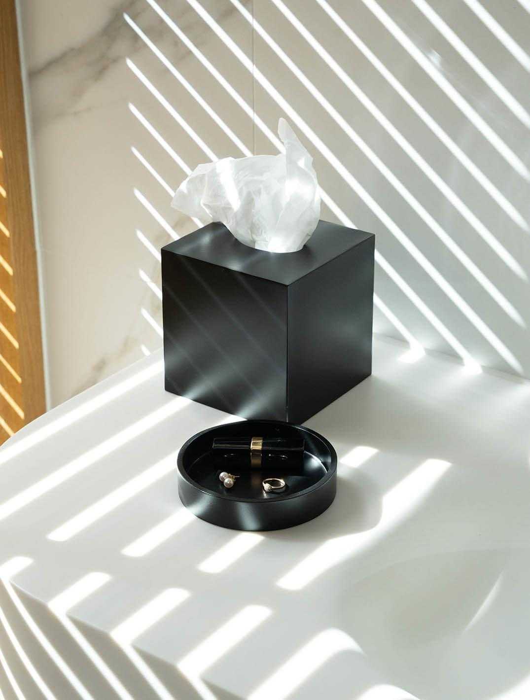 Bentley Baker peçete kutusu, lüks banyo setlerini tamamlayan şık bir parçadır. Beyaz mermer ve siyah renk seçenekleriyle sunulur. Çoğu kare peçete kutusuyla uyumludur. Mix & Match banyo koleksiyonunun bir parçası olan bu ürün, yüksek kaliteli reçineden üretilmiştir. Su itici özelliğe sahiptir ve temizliği kolaydır. Zarif tasarımıyla hem estetik hem işlevsel bir çözüm sunar.