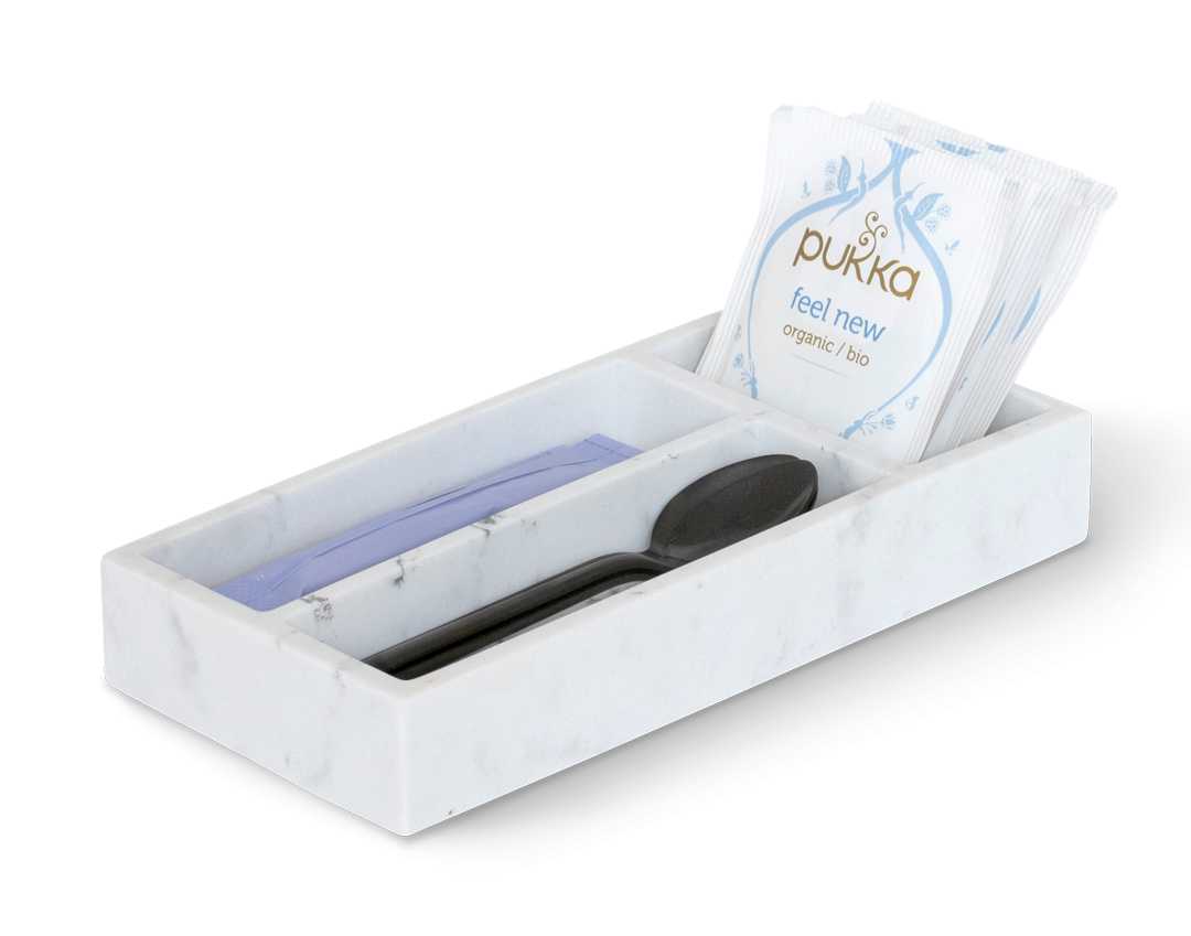 • Kapsüller, çay poşetleri ve çubukları düzenlemek için 3 bölme