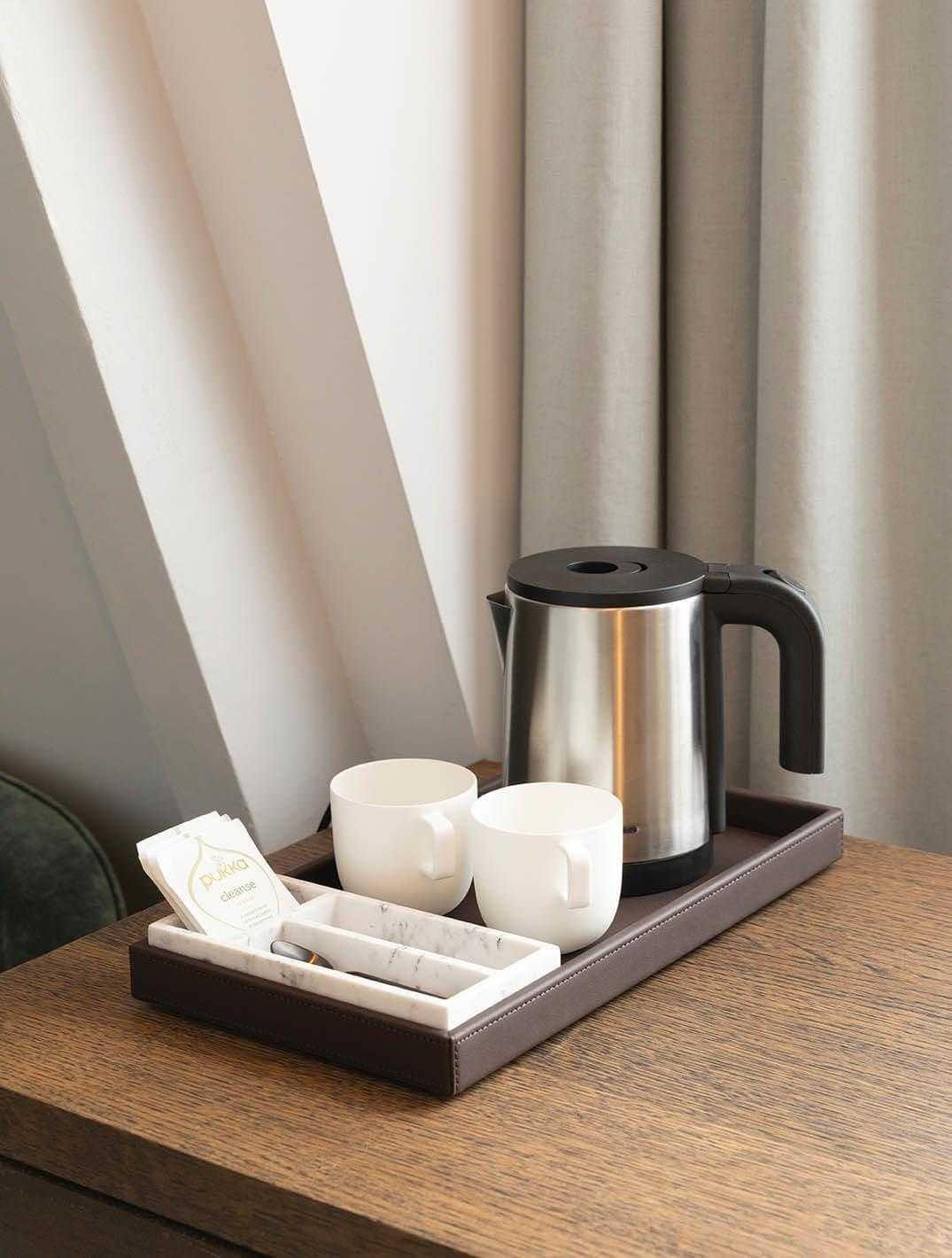 Üç bölmesi bulunan tepsi, kapsüller, çay poşetleri ve karıştırıcılar gibi ikram malzemelerini düzenli şekilde sergilemek için idealdir. Farklı ürünlerle kombinleyerek kişiselleştirilmiş içecek sunum alanları oluşturabilirsiniz.