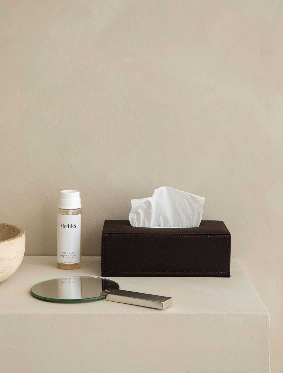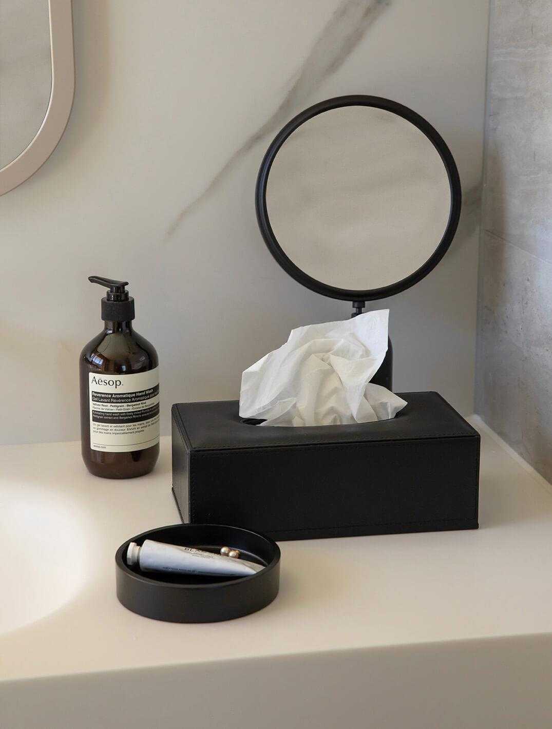 Çoğu dikdörtgen peçete kutusuyla uyumlu olacak şekilde tasarlanmıştır. Alt kısmında yer alan mıknatıslı kapak sayesinde peçeteleri yerleştirmek son derece kolaydır. Üst bölümdeki elips formundaki açıklık ise tasarıma modern ve sofistike bir hava kazandırır.