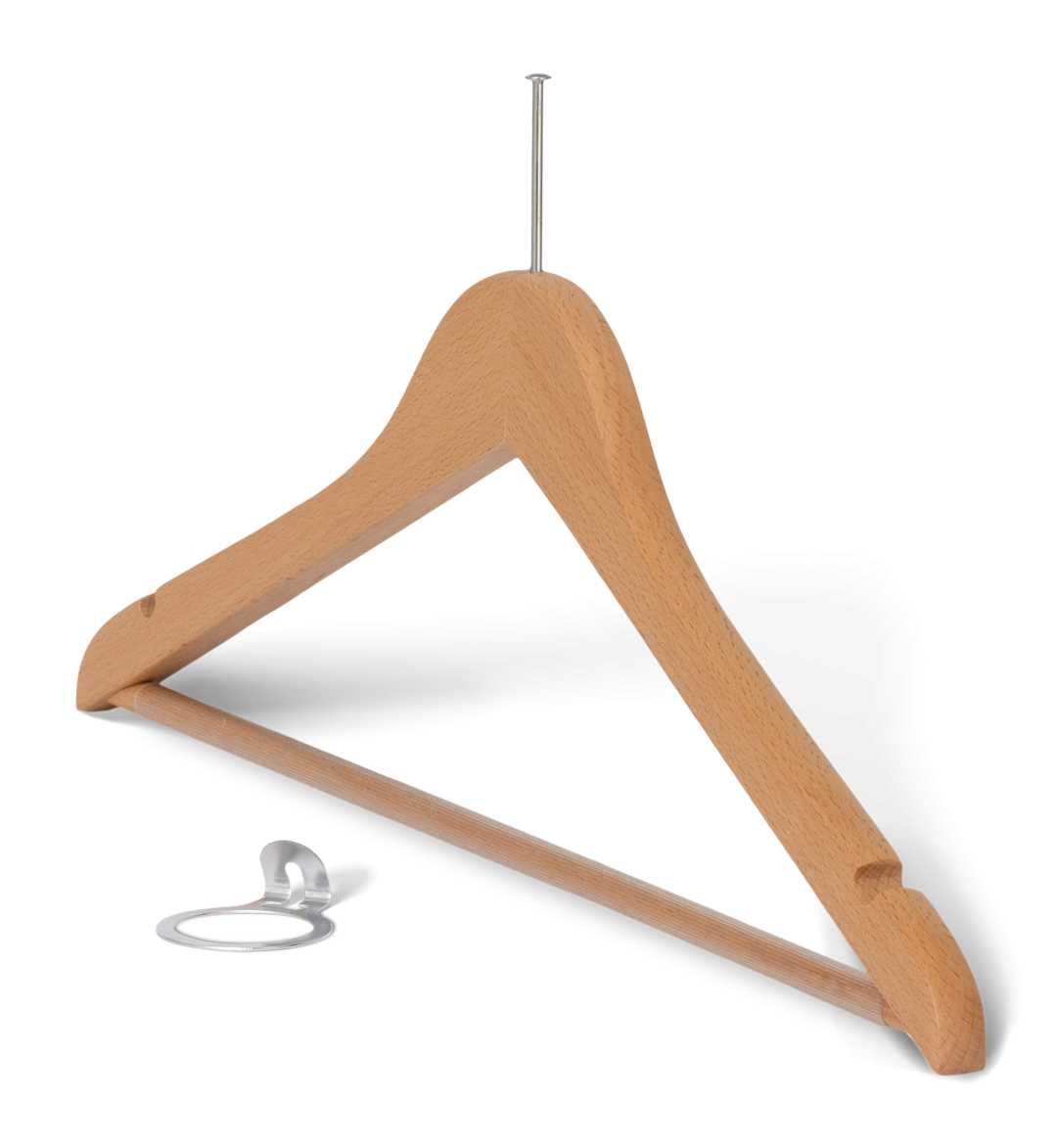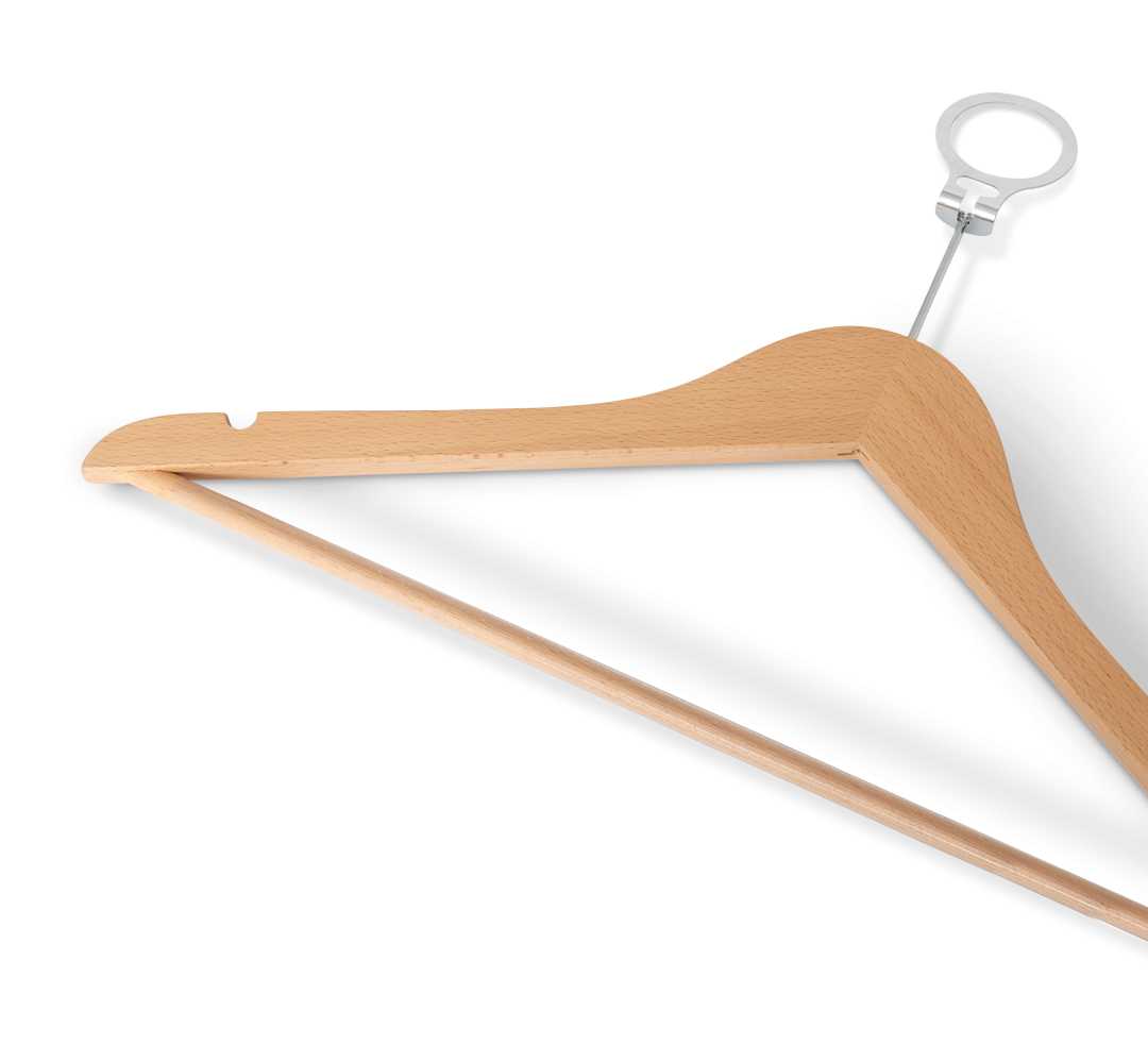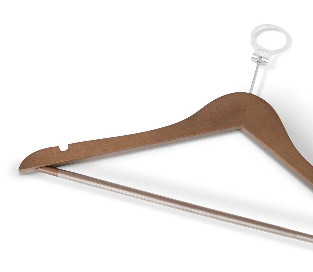 Melville askı, modern tasarımı güvenli kullanım özellikleriyle birleştirir. FSC sertifikalı kayın ağacından üretilmiş olup, kaymaz kauçuk kaplamalı sağlam barı ve pinli kanca-barlı anti-hırsızlık sistemiyle kıyafetlerinizi güvenle asmanızı sağlar. Natural, ceviz ve siyah yüzey seçenekleriyle her gardıroba organik bir zarafet ve dinginlik katar. Hem şıklık hem de işlevsellik arayan kullanıcılar için ideal bir tercihtir.