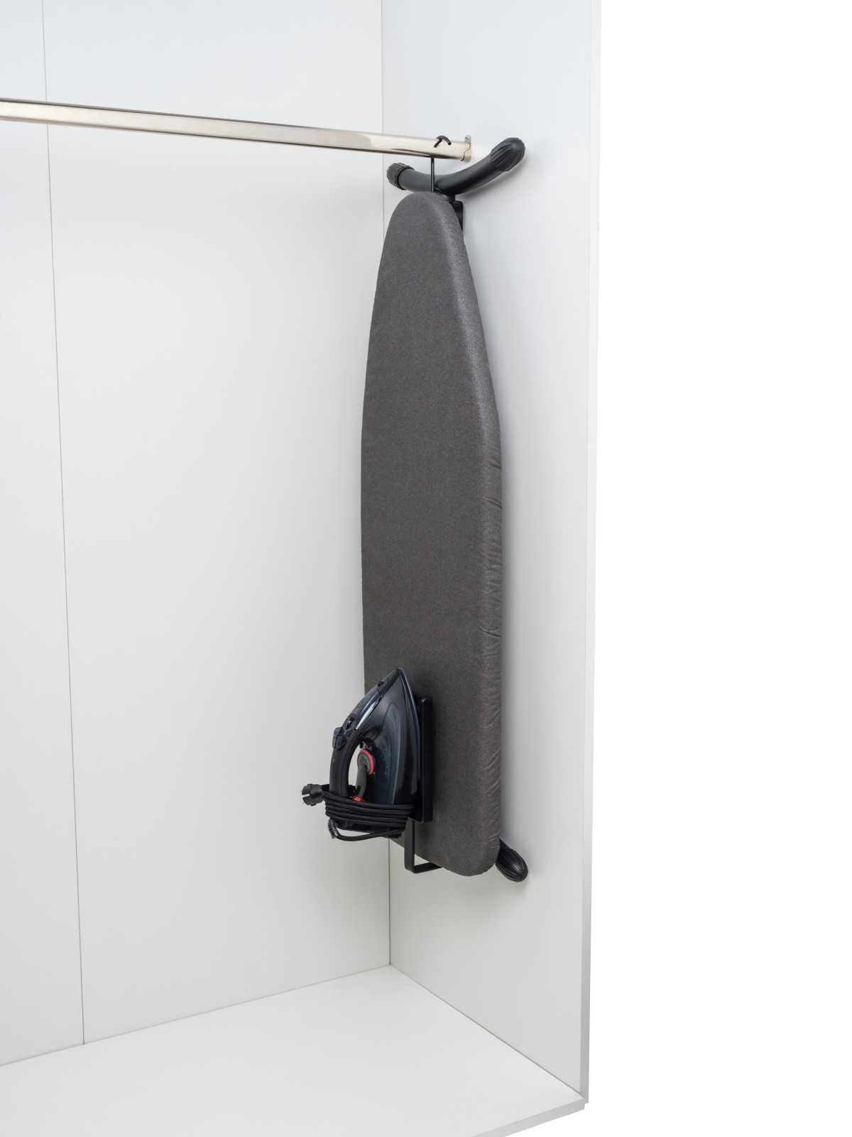 • Alan tasarrufu sağlayan entegre ütü organizeri ve askı