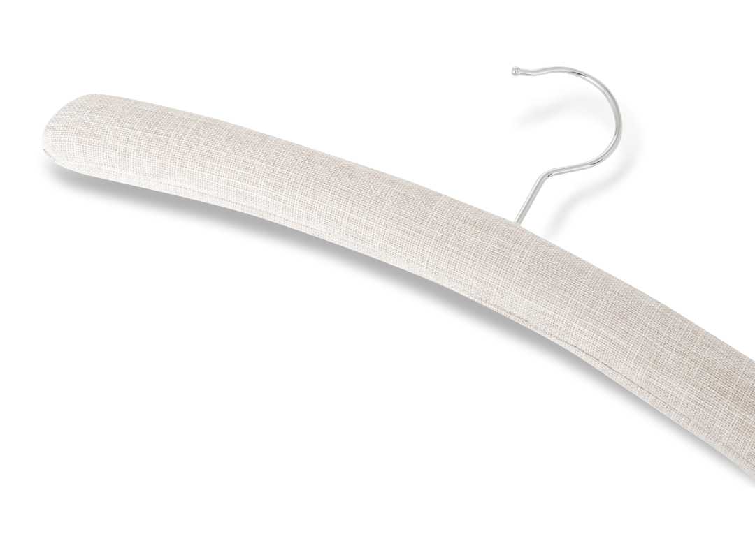 Wellington askı, modern estetiği zarif işlevsellikle buluşturur. Pamuk ve keten kumaşların birleşiminden üretilmiş olup, hassas giysiler için özel olarak tasarlanmıştır. Naturel rengiyle gardırobunuza yumuşak ve organik bir dokunuş katarken, zarafetle korunmuş bir kullanım sunar.